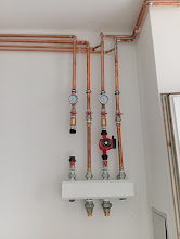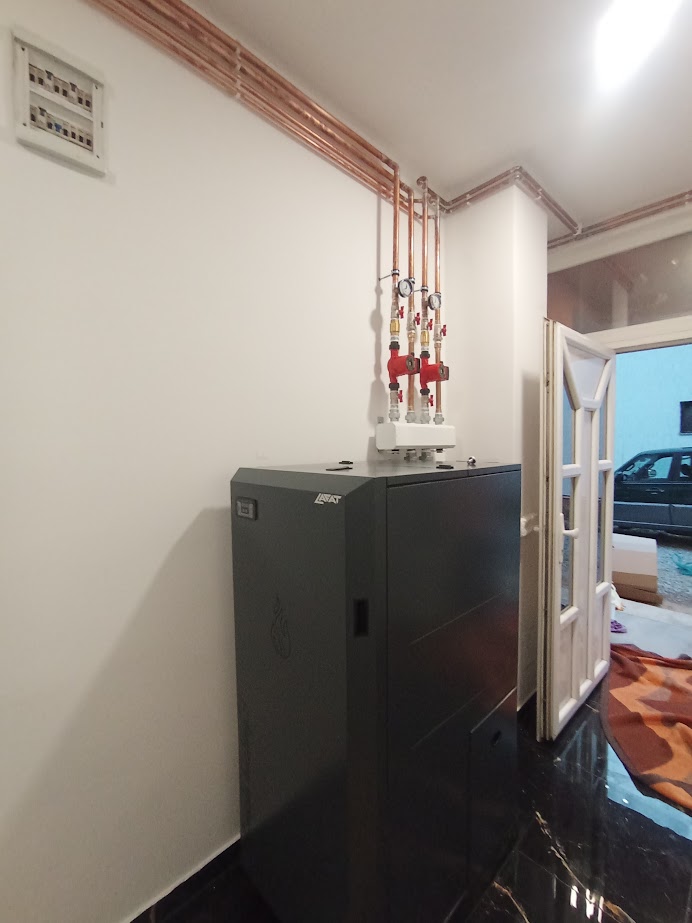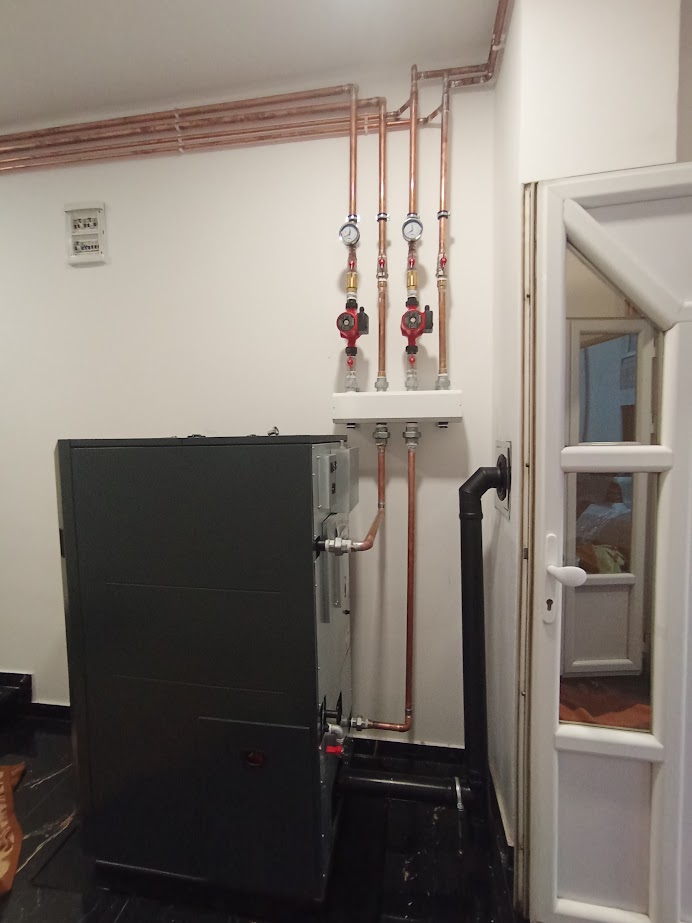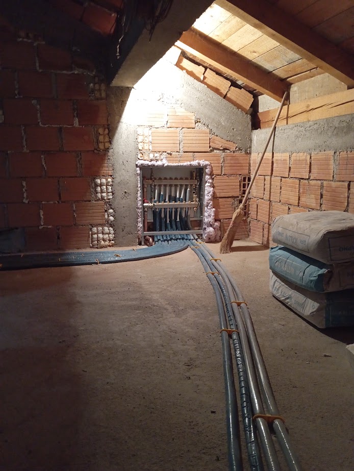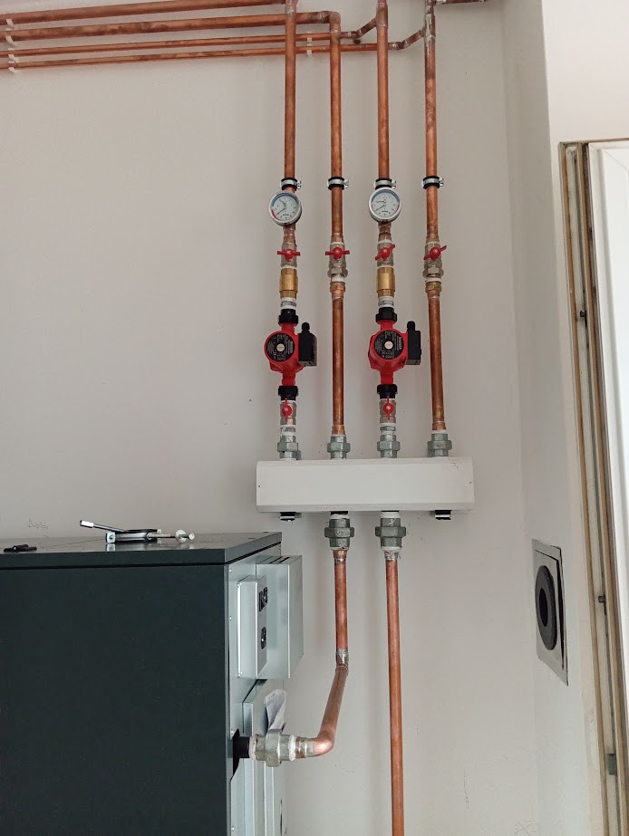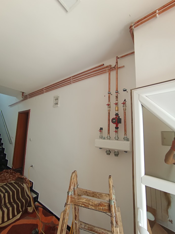 Na jednom spratu kuće postavljen je jednocijevni sistem grijanja, dok je na drugom spratu dvocijevni sistem.